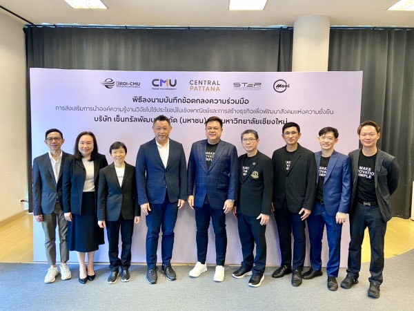 มหาวิทยาลัยเชียงใหม่ (มช.) ตอกย้ำบทบาทผู้นำด้านการวิจัยและนวัตกรรมเพื่อความยั่งยืน ร่วมกับบริษัท เซ็นทรัลพัฒนา จำกัด (มหาชน) (CPN) บริษัทพัฒนาอสังหาริมทรัพย์ชั้นนำของประเทศ ลงนามบันทึกข้อตกลงความร่วมมือครั้งสำคัญระหว่างสถาบันการศึกษาและภาคเอกชนชั้นนำ มุ่งใช้ศักยภาพงานวิจัยของ มช. ต่อยอดสู่การใช้ประโยชน์เชิงพาณิชย์และสร้างธุรกิจ เพื่อสังคมผ่านการสร้าง ‘ระบบนิเวศนวัตกรรม (Sustainable Ecosystem)’ ที่เชื่อมโยงความยั่งยืนในทุกมิติอย่างเป็นรูปธรรม
