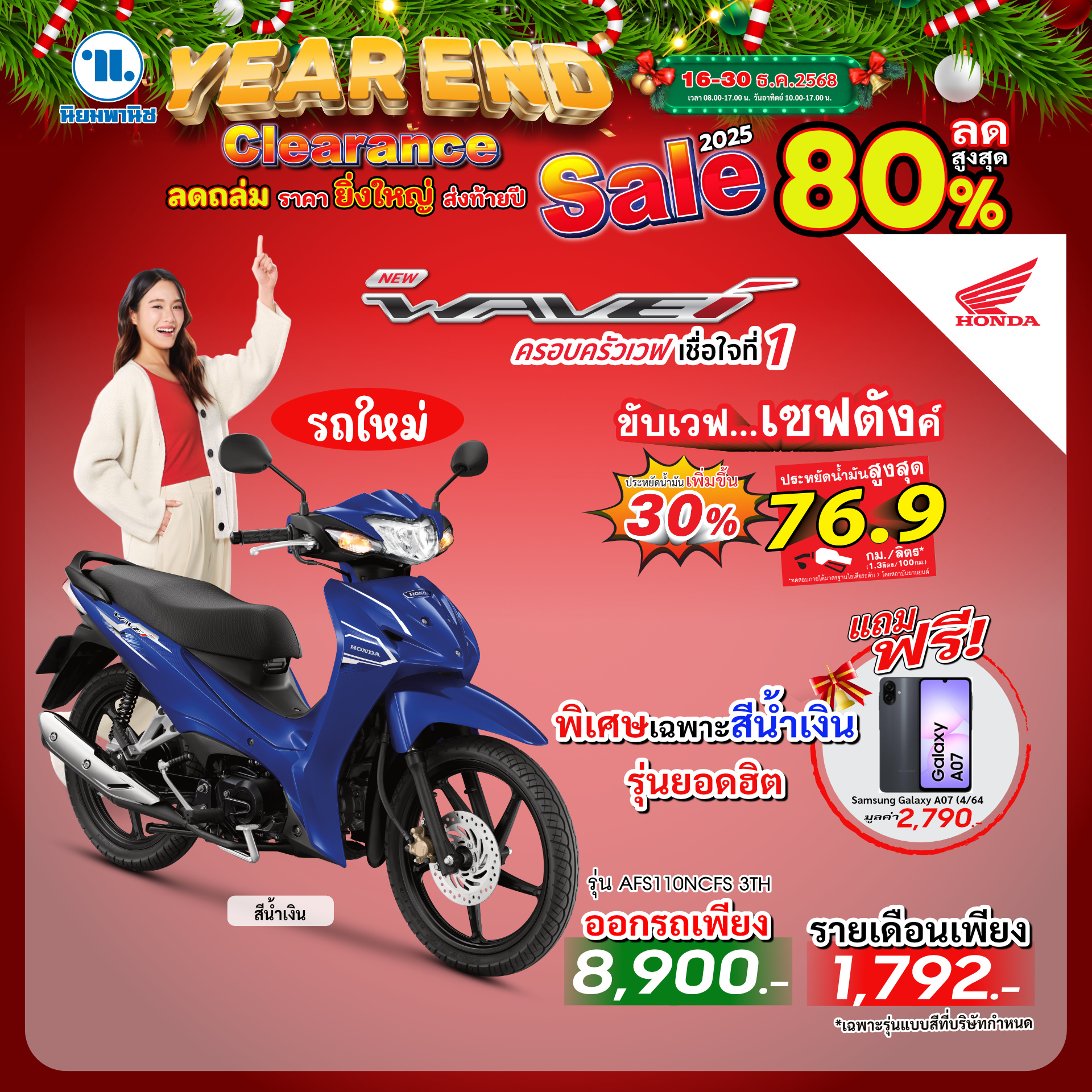 HONDA SHOCK ราคาส่งท้ายปี! (วันนี้ - 31 ธ.ค. 68) HONDA SHOCK ราคา! ส่งท้ายปีแบบไม่เบานิยมพานิช คืนกำไร ช่วงสุดท้ายก่อนสิ้นปี! รวมรุ่นฮิต Honda Wave110i, Honda Scoopy prestige และ Club1...