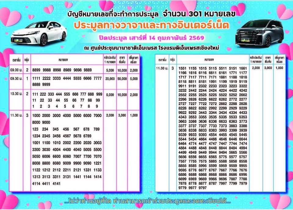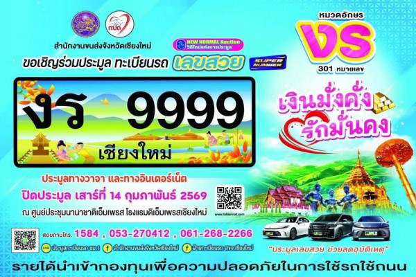 เลขสวยมาแล้ว ขนส่งฯ เชียงใหม่ เปิดประมูลป้ายทะเบียนรถ งร ความหมาย สุดว้าว! “เงินมั่งคั่ง รักมั่นคง” รับเดือนแห่งความรัก