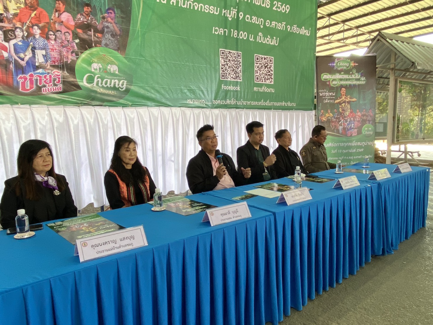 (21 ม.ค.69) ชุมชนตำบลชมภู อำเภอสารภี จังหวัดเชียงใหม่ แถลงข่าวเตรียมจัดกิจกรรม “คอนเสิร์ตการกุศลเพื่อชมภูน่าอยู่” โดยมี ดร.ธวัช ชัยแก้ว นายกเทศมนตรีตำบลชมภู นายวสัน รอดปั้น ผู้จัดการการขายเครื่องดื่มตราช้าง (ไทยเบฟเวอเรจ) ประจำจังหวัดเชียงใหม่ ผู้นำชุมชน และคณะผู้เกี่ยวข้อง ร่วมการแถลงข่าวต่อสื่อมวลชน มีผู้ร่วมรับฟังจำนวนมาก ณ สำนักงานเทศบาลตำบลชมภู