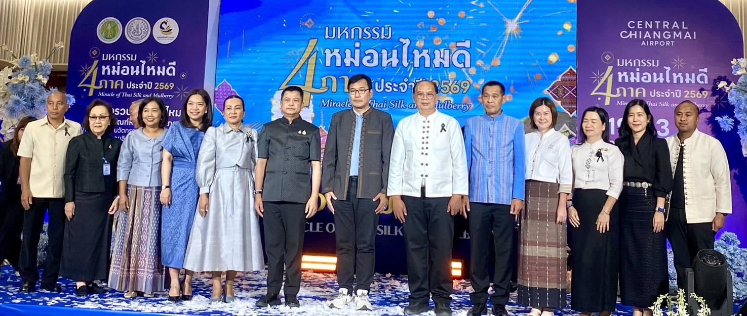 เมื่อวันที่ 19 กุมภาพันธ์ 2569 นายศรัญญ พูลลาภ อธิบดีกรมหม่อนไหม ประธานในพิธีเปิดโครงการประชาสัมพันธ์และส่งเสริมการจำหน่ายผ้าไหมและผลิตภัณฑ์หม่อนไหมดี 4 ภาค: "Miracle of Thai Silk and Mulberry" โดยมี นางสาวเบญจวรรณ มีเผือก รองผู้ว่าราชการจังหวัดลำพูน นางพรนิภา มาสิลีรังสี รองอธิบดีกรมกิจการสตรีและสถาบันครอบครัว นายศิระ สันติตรานนท์ ผู้จัดการทั่วไป ศูนย์การค้าเซ็นทรัลเชียงใหม่ แอร์พอร์ต และหัวหน้าส่วนราชการจังหวัดเชียงใหม่ แขกผู้มีเกียรติ ร่วมพิธีเปิดงานโครงการ ณ ห้างสรรพสินค้าเซ็นทรัลเชียงใหม่ แอร์พอร์ต