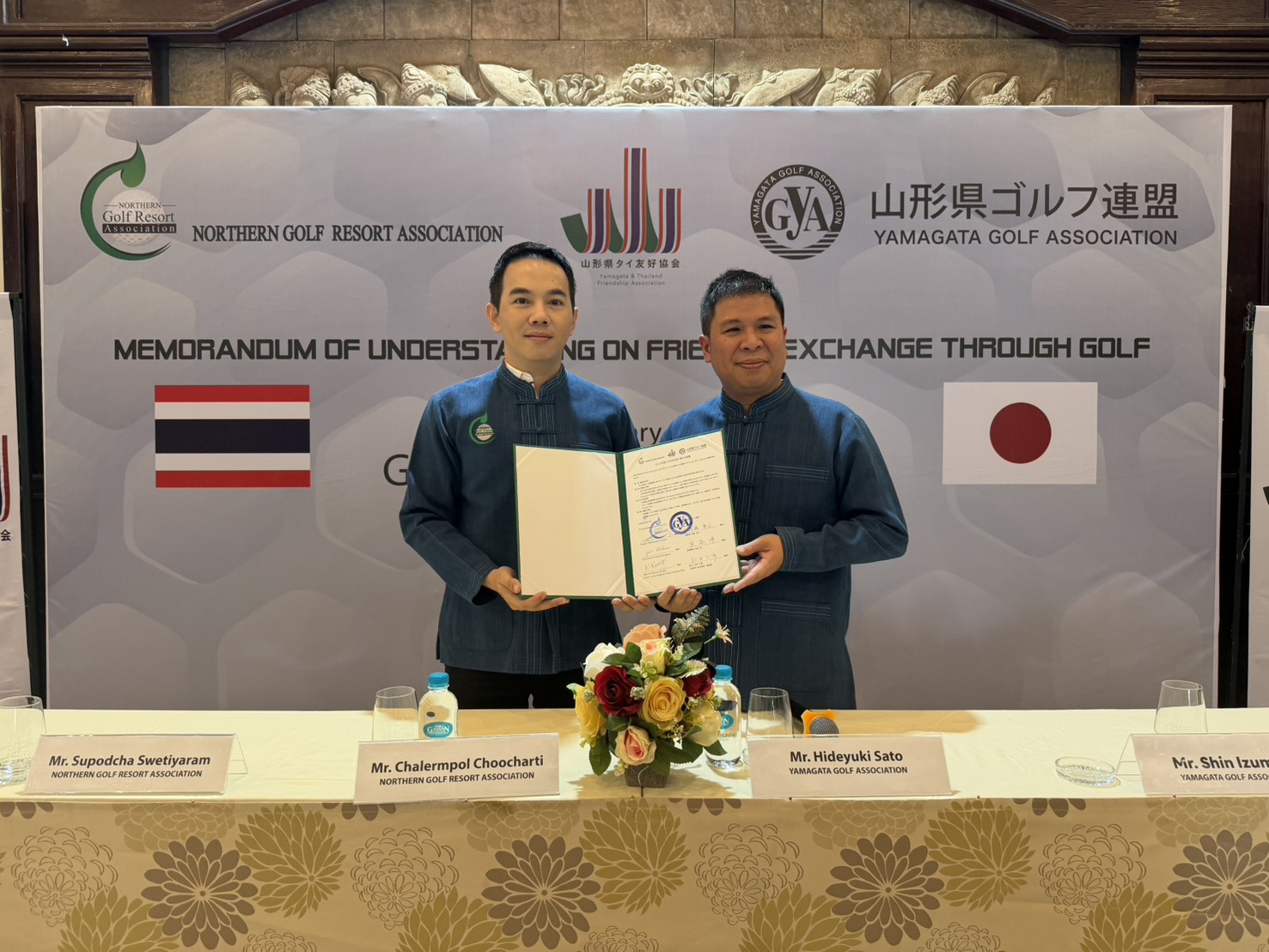 ภายในพิธีมี นายเฉลิมพล ชูชาติ นายกสมาคมกอล์ฟรีสอร์ทภาคเหนือ พร้อมด้วย นายสุพชฌาย์ เสวตไอยาราม อุปนายกสมาคมกอล์ฟรีสอร์ทภาคเหนือ และ สมาคมกอล์ฟยามากาตะ แห่ง จังหวัดยามากาตะ ประเทศญี่ปุ่น ซึ่งนำโดย Mr.Hideyuki Sato ประธานของ Yamagata Golf Federation พร้อมด้วย Mr.Izumiya Shin รองประธาน Yamagata Golf Federation และ Mr.Masahiko Matsuta จาก สมาคมมิตรภาพไทย-ยามากาตะ ได้ร่วมลงนามบันทึกความเข้าใจ ระหว่าง สมาคมกอล์ฟรีสอร์ทภาคเหนือ และ สมาคมกอล์ฟยามากาตะ แห่ง จังหวัดยามากาตะ ประเทศญี่ปุ่น โดยมีวัตถุประสงค์ในการส่งเสริมความร่วมมือด้านการท่องเที่ยวเชิงกอล์ฟ ร่วมกันพัฒนาและส่งเสริมการท่องเที่ยวกอล์ฟระหว่างภาคเหนือของประเทศไทยและจังหวัดยามากาตะ อันจะก่อให้เกิดการเพิ่มจำนวนนักกอล์ฟและนักท่องเที่ยวระหว่างสองประเทศ รวมถึงการแลกเปลี่ยนองค์ความรู้และประสบการณ์ และสนับสนุนการแลกเปลี่ยนข้อมูล ความรู้ เทคโนโลยี และแนวปฏิบัติที่ดีด้านการบริหารจัดการสนามกอล์ฟ รีสอร์ท และการจัดการแข่งขันกอล์ฟ