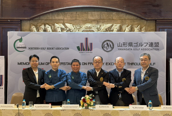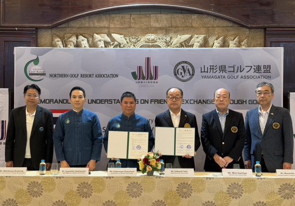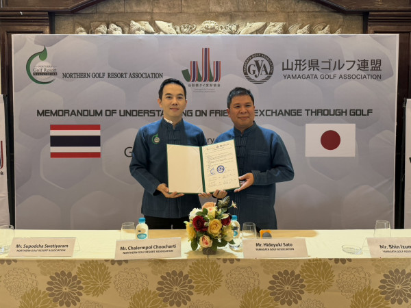 เมื่อเวลา 09.00 น. วันที่ 23 กุมภาพันธ์ 2569 ที่ห้องฟ้าประทาน คลับเฮาส์ สนามกอล์ฟ กัซซัน เลกาซี่ กอล์ฟ คลับ จ.ลำพูน มีพิธีลงนามบันทึกข้อตกลงความร่วมมือ (MOU) ระหว่าง Yamagata Golf Association ประเทศญี่ปุ่น และ Northern Golf Resort Association ระหว่างเวลา 09.00 – 11.00 น. เพื่อส่งเสริมการท่องเที่ยวเชิงกีฬากอล์ฟ พร้อมหารือแนวทางความร่วมมือในการเชื่อมความสัมพันธ์ แลกเปลี่ยนวัฒนธรรม และองค์ความรู้ด้านกีฬากอล์ฟทั้งในระดับภูมิภาคและระดับประเทศ รวมถึงร่วมกันผลักดันอุตสาหกรรมกอล์ฟเชิงท่องเที่ยวสู่ตลาดโลกอย่างเป็นรูปธรรมในอนาคต