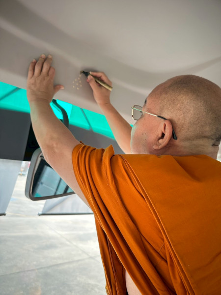 พิธีเจิมรถและประพรมน้ำพระพุทธมนต์: เสริมมงคลนาม "วัดดวงดี" ให้ทุกการเดินทางโชคดีและราบรื่น