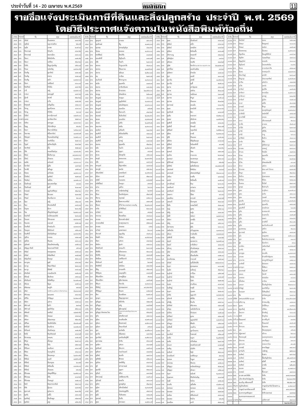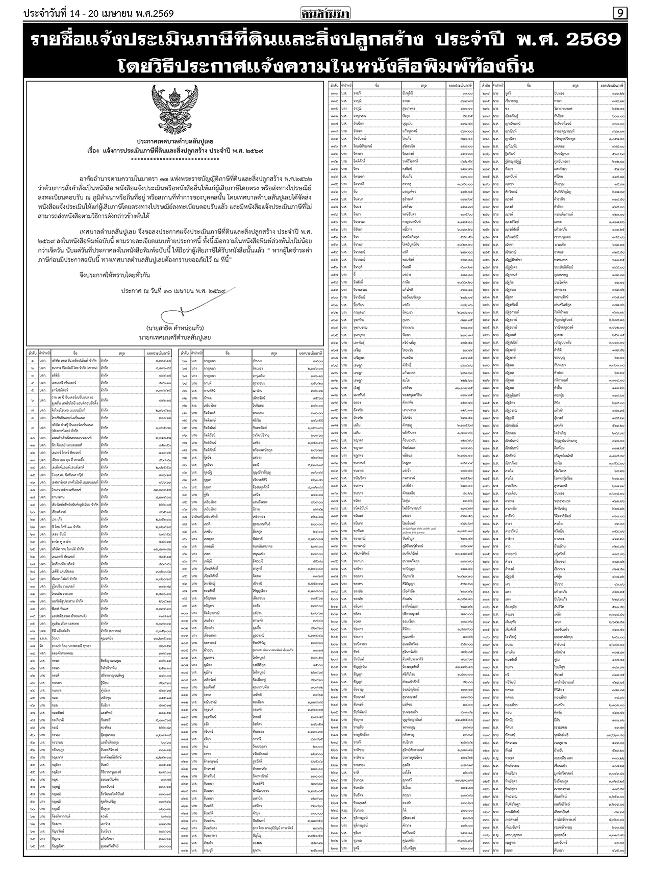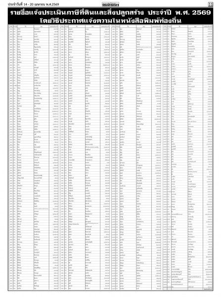 เทศบาลตำบลสันปูเลย จึงขอลงประกาศแจ้งประเมินภาษีที่ดินและสิ่งปลูกสร้าง ประจำปี พ.ศ. 2569 ลงในหนังสือพิมพ์ฉบับนี้ ตามรายละเอียดแนบท้ายประกาศนี้ ทั้งนี้เมื่อความในหนังสือพิมพ์ล่วงพ้นไปไม่น้อยกว่าเจ็ดวัน นับแต่วันที่ประกาศลงในหนังสือพิมพ์ฉบับนี้ ให้ถือว่าผู้เสียภาษีได้รับหนังสือนั้นแล้ว “ หากผู้ใดชำระค่าภาษีก่อนมีประกาศฉบับนี้ ทางเทศบาลตำบลสันปูเลยต้องกราบขออภัยไว้ ณ ทีนี้”