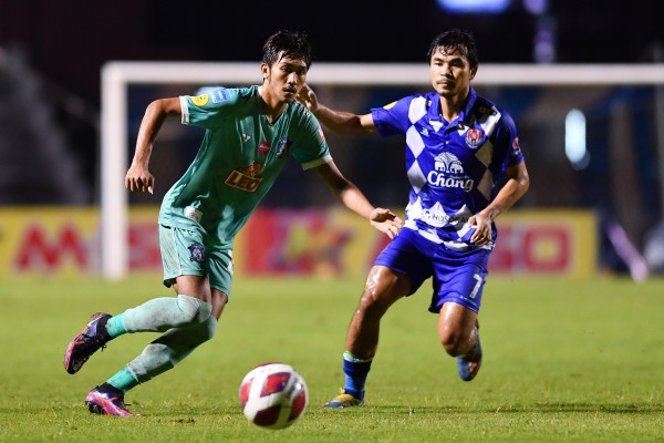 ครึ่งแรกทั้งสองทีมครองบอลลำบากเนื่องจากมีฝนตกลงมาก่อนการแข่งขันทำให้พื้นสนามค่อนข้างลื่น โดยเจ้าถิ่นที่เดินเครื่องบุกเข้าทำทันทีและได้ลูกเตะมุม 3 ครั้งติดต่อกันในช่วงสองนาทีแรก แต่นาทีที่ 5 เชียงใหม่ เอฟซี สวนกลับจากแดนตัวเอง เซยะ ซูงิชิตะ ไหลให้ ดานิโล โลเปส แทงต่อทะลุให้ ตะวัน โคตรสุโพธิ์ หลุดเข้าเขตโทษแต่นายด่านเจ้าถิ่นออกมาสไลด์รับบอลได้ทัน ถัดมานาทีเดียว เชียงใหม่ เอฟซี ที่เข้าทำต่อเนื่องมาได้ลุ้นอีกครั้ง  เซยะ ซูงิชิตะ ไหลออกขวาให้ มีเดช สรายุทธพิสัย เติมมาเปิดจากฝั่งขวาเข้าเขตโทษ ตะวัน โคตรสุโพธิ์ สอดมาโหม่งข้ามคานนิดเดียว
