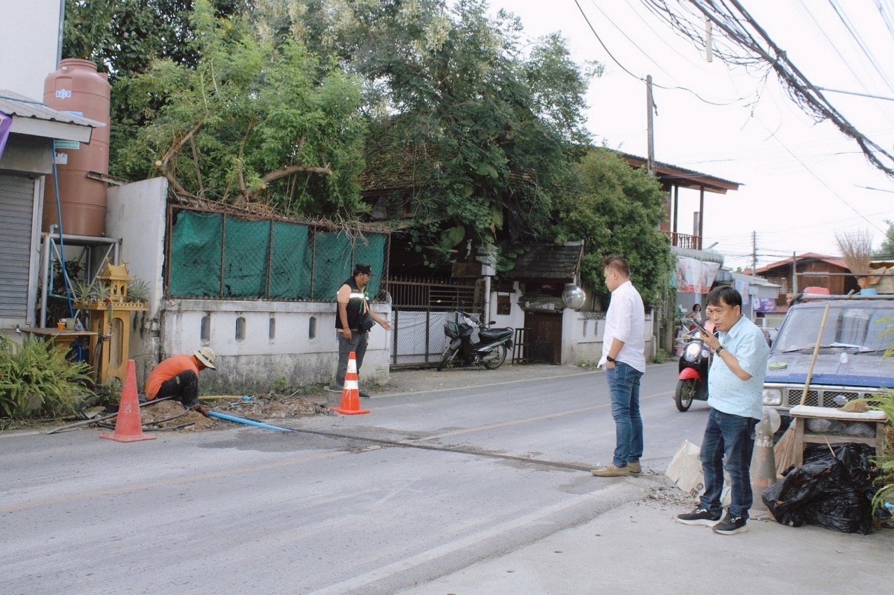 เมื่อวันที่ผ่านมา นายภาวิต บุญชละ รองนายกเทศมนตรีตำบลสันผีเสื้อ อ.เมืองเชียงใหม่ นายวีระชัย จันทพร เลขานุการนายกเทศมนตรีฯ นายนิเรศ เข็มขาว ผู้ใหญ่บ้าน หมู่ที่ 6 บ้านท่าเดื่อ พร้อมด้วยเจ้าหน้าที่ เทศบาลตำบลสันผีเสื้อ ลงพื้นที่ตรวจสอบการขุดเจาะถนนอันเป็นการทำลายทรัพย์สินสาธารณะประโยชน์บนทางหลวงท้องถิ่น พบว่าการประปาส่วนภูมิภาค สาขาแม่ริม ได้ว่าจ้างบริษัทเอกชน ดำเนินการขุดเจาะถนนเพื่อวางท่อประปา โดยมิได้ยื่นขออนุญาตจากทางเทศบาล บริเวณหน้าตลาดท่าเดื่อ หมู่ที่ 6 ตำบลสันผีเสื้อ เป็นเหตุให้ถนนพังเสียหาย การจราจรติดขัด เนื่องจากไม่มีป้ายแจ้งเตือน การปฎิบัติงานไม่มีอุปกรณ์ป้องกันอันตรายเสี่ยงต่อการเกิดอุบัติเหตุบนท้องถนนซึ่งทางการประปา ไม่มีแผนดำเนินการเพื่อแจ้งให้ทางเทศบาลทราบเพื่อจะได้คอยกำกับดูแลช่วยเหลือการจราจรและตรวจสอบจุดบริเวณที่ขุดเจาะ ทำให้ประชาชนได้รับความเดือดร้อนอย่างมาก