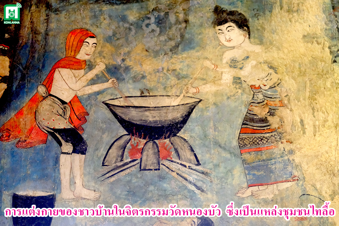 ภาพจิตรกรรมแม่ญิงนุ่งผ้าซิ่นแบบไทลื้อของจิตรกรรมสกุลช่างเมืองน่านนี้ พบที่วัดหนองบัว ซึ่งตั้งอยู่ที่อำเภอท่าวังผา กับอีกแห่งคือจิตรกรรมที่วัดภูมินทร์ โดยที่ทั้งสองแห่งนี้ เป็นผลงานของศิลปินคนเดียวกันคือ “หนานบัวผัน” (ทิดบัวผัน) ซึ่งวาดภาพทั้งสองแห่งในสมัยรัชกาลที่ 5