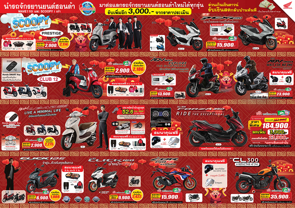 ตรุษจีนนี้ ออกรถใหม่รับความเฮง กับโปรปังๆ Niyom Chinese New Year Sale ...เพียง 3,900 บาท ก็ออกจักรยานยนต์ สายฟาดสุดเฟี้ยว หรือสายครอบครัวตลอดกาลได้....