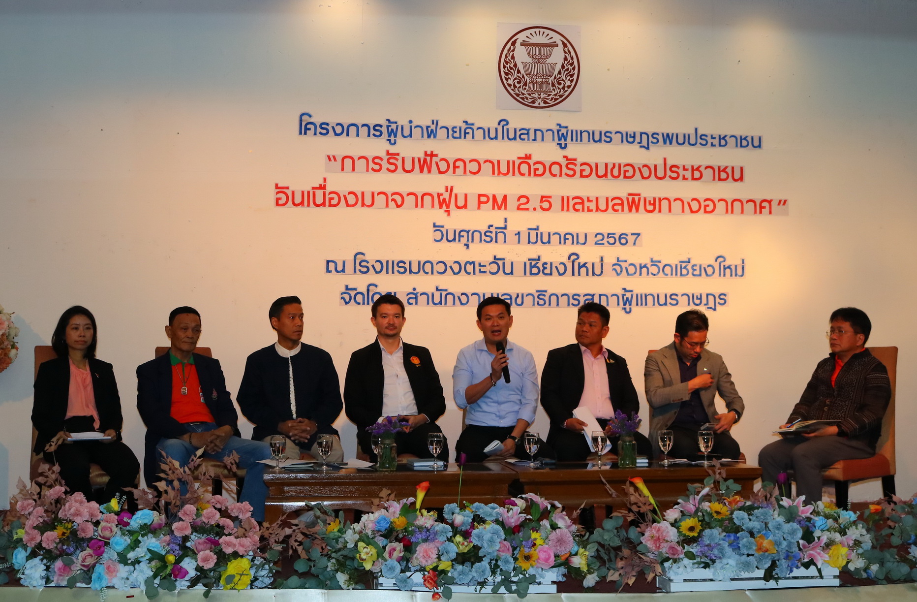 กลุ่มงานผู้นำฝ่ายค้านในสภาผู้แทนราษฏร สำนักงานเลขาธิการสภาผู้แทนราษฏร จัดงานสัมมนา โครงการผู้นำฝ่ายค้านในสภาผู้แทนราษฏรพบประชาชน ประจำปีงบประมาณ 2567 หัวข้อ  “ การรับฟังความเดือดร้อนของประชาชน อันเนื่องมาจากฝุ่น PM 2.5 และมลพิษทางอากาศ ” โดยมี นายชัยธวัช ตุลาธน สส.บัญชีรายชื่อ หัวหน้าพรรคก้าวไกล ในฐานะผู้นำฝ่ายค้านในสภาผู้แทนราษฎร เป็นประธานในงาน รวมทั้งศาสตราจารย์ ดร.สุชัชวีร์ สุวรรณสวัสดิ์ รองหัวหน้าพรรคประชาธิปัตย์ ให้เกียรติร่วมงาน และมีสมาชิกสภาผู้แทนราษฏรอีกหลายท่านให้เกียรติร่วมสัมมนาในครั้งนี้เช่นกัน  โดยมีหน่วยงานภาครัฐ ภาคเอกชน นักศึกษา และประชาชน เข้าร่วมกว่า 200 คน  ณ ห้องดวงตะวันแกรนด์บอลล์รูม โรงแรมดวงตะวัน เชียงใหม่