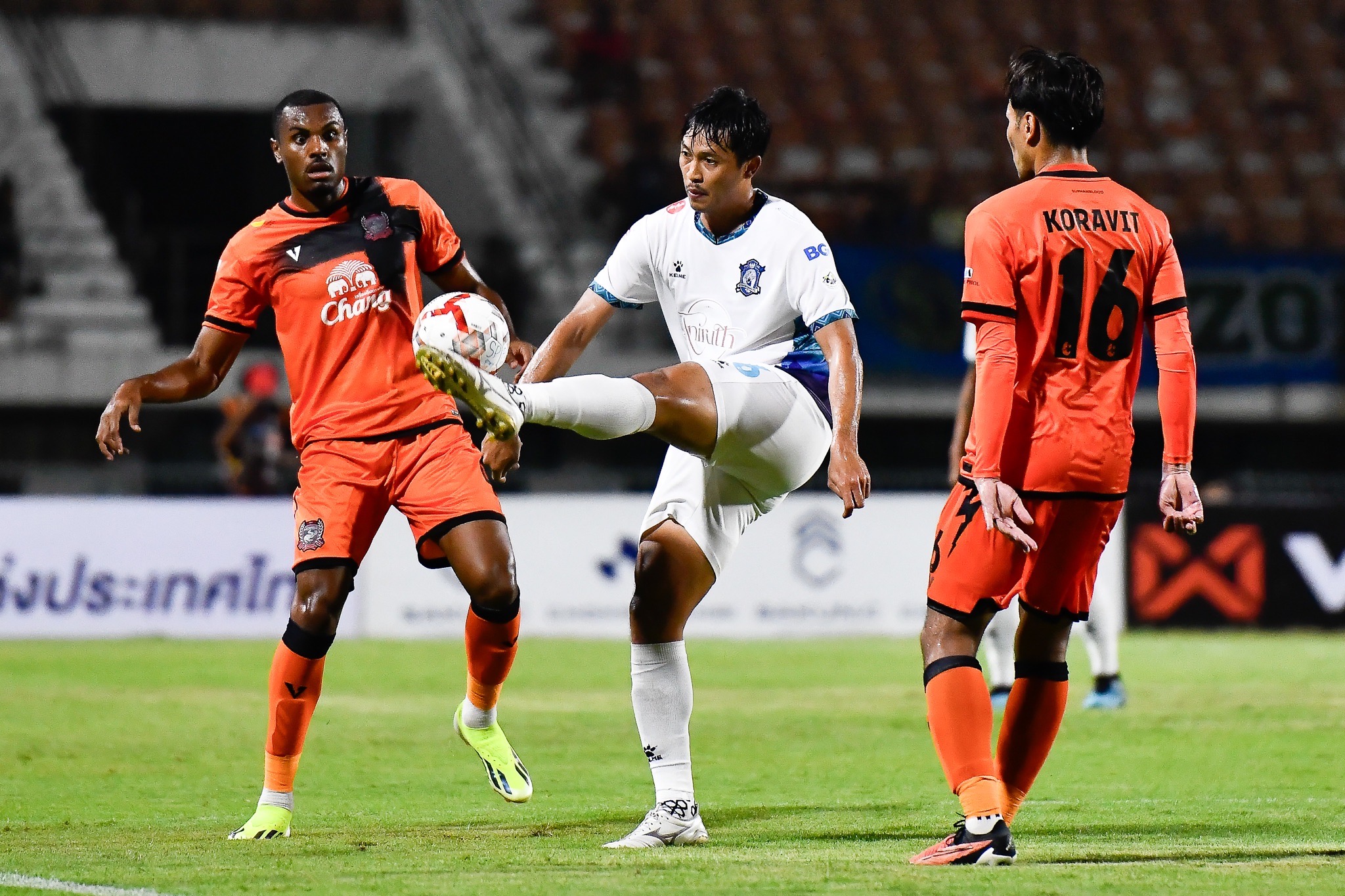 น.16 ยูกิ บัมบะ สบโอกาสยิงด้วยซ้ายริมเขตโทษ บอลตรงตัวอิทธิพล สามนาทีต่อมา กุสตาโว่ รับบอลโหม่งเช็ดจาก บัมบะ แล้วหลุดเข้าไปในเขต ก่อนยิงไปติดบล็อค ปิยะชนก อย่างหวุดหวิด