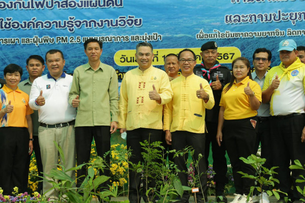 นายเทวา ปัญญาบุญ รองผู้ว่าราชการจังหวัดน่าน  กล่าวเปิดงานว่า การจัดกิจกรรม“การทำแนวป้องกันไฟป่าสองแผ่นดิน และการประยุกต์ใช้องค์ความรู้จากงานวิจัยเพื่อแก้ไขปัญหาความยากจน ลดการเผา และฝุ่น PM 2.5 แบบบูรณาการและมุ่งเป้า” เป็นกิจกรรมที่ดีในการเผยแพร่และถ่ายทอดองค์ความรู้โครงการหลวงเกี่ยวกับแนวทางการปรับระบบเกษตรที่เป็นมิตรต่อสิ่งแวดล้อม ลดใช้สารเคมี ลดการเผา เพื่อเป็นทางเลือกในการพัฒนาอาชีพ และแก้ไขปัญหาความยากจนให้กับประชาชนบนพื้นที่สูงในเขตชายแดนประเทศไทย และประชาชนสาธารณรัฐประชาธิปไตยประชาชนลาว ให้มีคุณภาพชีวิตที่ดีขึ้น กระตุ้นจิตสำนึกและรณรงค์ประชาสัมพันธ์เผยแพร่องค์ความรู้การป้องกันแก้ไขปัญหาไฟป่าและการเผาในที่โล่ง สามารถสร้างเครือข่ายความร่วมมือในการควบคุมไฟป่า รวมทั้งส่งเสริมให้ประชาชนได้มีส่วนร่วมในการป้องกันแก้ไขปัญหามลพิษจากหมอกควันไฟป่าได้อย่างยั่งยืน