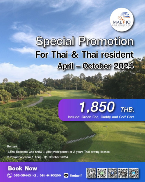 สนามแม่โจ้กอล์ฟ รีสอร์ทแอนด์สปา เชียงใหม่ จัดโปรสุดคุ้ม พิสูจน์ความพร้อมสนาม รับศึกกอล์ฟอาชีพ all Thailand Golf Tour รายการ สิงห์เชียงใหม่ โอเพ่น 2024เพื่อเป็นการเตรียมพร้อมรับ การแข่งขันกอล์ฟอาชีพรายการ Singha Chiang Mai Open 2024 ซึ่งเป็นการแข่งขันกอล์ฟอาชีพของ all Thailand Golf Tour ชิงเงินรางวัลรวม 3 ล้านบาท ในระหว่างวันที่ 25 - 28 กรกฎาคม 2567  ทางสนามแม่โจ้กอล์ฟคลับ รีสอร์ทแอนด์สปา อำเภอสันทราย จังหวัดเชียงใหม่ ได้จัดโปรโมชั่นสุดคุ้มเดือนมิถุนายน เพื่อให้นักกอล์ฟได้ร่วมพิสูจน์ความสมบูรณ์และความท้าทายของสนาม ที่จะใช้เป็นสนามสำหรับการแข่งขันกอล์ฟในระดับอาชีพ  โปรโมชั่นสำหรับชาวไทยและไทยเรสสิเด้นท์ ออกรอบทุกวัน ในราคาท่านละ 1,850 บาท /18 หลุม (ราคารวมกรีนฟี+แคดดี้+รถกอล์ฟ) ออกรอบ 1 ก๊วนขั้นต่ำ 3 ท่าน (หลังเที่ยง ทุกวัน) เพียงท่านละ 1,650 บาท/18 หลุม (ราคารวมกรีนฟี+แคดดี้+รถกอล์ฟ) ในส่วนของสมาชิกสนามฯที่บัตรสมาชิกยังไม่หมดอายุนั้น สมาชิก Eagle :ออกรอบในราคา 1,450 บาท/ 18 หลุม (ราคารวมกรีนฟี+แคดดี้+รถกอล์ฟ) สมาชิกหมู่เฮาชาวเหนือ : 1,200 บาท / 18 หลุม (ราคารวมกรีนฟี+แคดดี้+รถกอล์ฟ) จองเวลาออกรอบ ได้ที่ 053-354431-2 หรือ 081-9193200