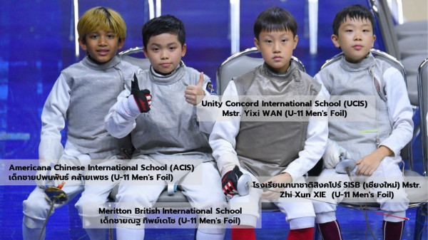 Unity Concord International School (UCIS) Mstr. Yixi WAN (Eli) เข้ารอบ 4 คนสุดท้าย จัดเป็นมือวางอันดับ 5 ของรายการ เข้าไปชิงชนะเลิศ คว้าเหรียญเงิน ในรายการประเภทดาบฟลอยด์ รุ่นอายุไม่เกิน 11 ปีชาย