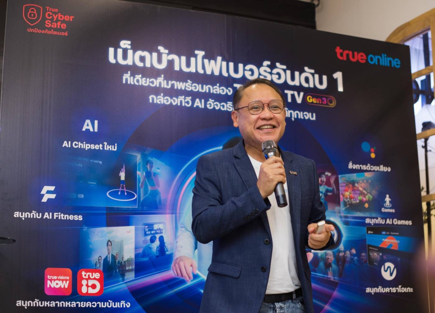นายสกลพร  หาญชาญเลิศ หัวหน้าสายงานโพสต์เพย์ บมจ. ทรู คอร์ปอเรชั่น กล่าวว่า “จากการเติบโตอย่างต่อเนื่องของตลาดสมาร์ทโฮมในประเทศไทย โดยคาดว่ามูลค่าตลาดจะเติบโตเฉลี่ยปีละ 18-20% ในช่วงปี 2023-2027 ทรูออนไลน์ในฐานะผู้นำนวัตกรรมเน็ตบ้านไฟเบอร์อันดับ 1 ยังคงสร้างสรรค์นวัตกรรมเทคโนโลยีที่ตอบสนองและเข้าใจความต้องการของมนุษย์ Human technology เพื่อเสริมสร้างประสบการณ์ที่ดีและ       ตอบโจทย์การใช้ชีวิตในแต่ละวันอย่างมีประสิทธิภาพ ภายใต้แนวคิด Your Everyday Connect Tech ล่าสุดแนะนำนวัตกรรมใหม่ที่ทุกบ้านต้องมีกับกล่อง TrueID TV Gen3 กล่องแอนดรอยด์ทีวี AI อัจฉริยะกับฟีเจอร์ใหม่สุดล้ำ สอดรับการใช้ชีวิตของคนในทุกมิติ ไม่ว่าจะเป็น  AI Chipset ใหม่ล่าสุดที่ให้ภาพคมชัดระดับ 4K HDR ไหลลื่น ไม่มีสะดุด มี AI Games ที่เล่นได้ง่าย ๆ เพียงขยับตัว โดยไม่ต้องใช้รีโมทหรือจอยสติ๊ก สำหรับสายสุขภาพ AI Fitness มาพร้อมคลาสออกกำลังกายกว่า 300 คลาส ใช้ AI นับแคลอรี พร้อมให้คะแนนท่าทางแบบเรียลไทม์ เสมือนมีเทรนเนอร์ส่วนตัวอยู่ที่บ้าน ด้านความบันเทิง รวบรวมเพลงฮิตคาราโอเกะจากแกรมมี่ให้ร้องกันแบบ Exclusive ผ่านแอปเพลิน  และยังสามารถสั่งการด้วยเสียงภาษาไทย ทั้งง่ายและสะดวกผ่าน Google Assistant นอกจากนี้ TrueID TV Gen3 ยังให้ทุกคนในบ้านเพลิดเพลินกับคอนเทนต์ระดับโลก ผ่านแอป TrueVisions NOW และ TrueID สนุกครบจบในเครื่องเดียว เติมเต็มความสุขและความอัจฉริยะของชีวิตสมาร์ทโฮม”