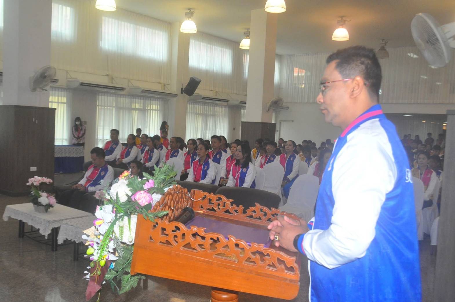 "รองหน่อ"กล่าวให้โอวาทนักกีฬาในสังกัดเทศบาลนครเชียงใหม่ก่อนออกเดินทางไปร่วมการแข่งขันกีฬา"สองแควเกมส์"ที่จังหวัดพิษณุโลก