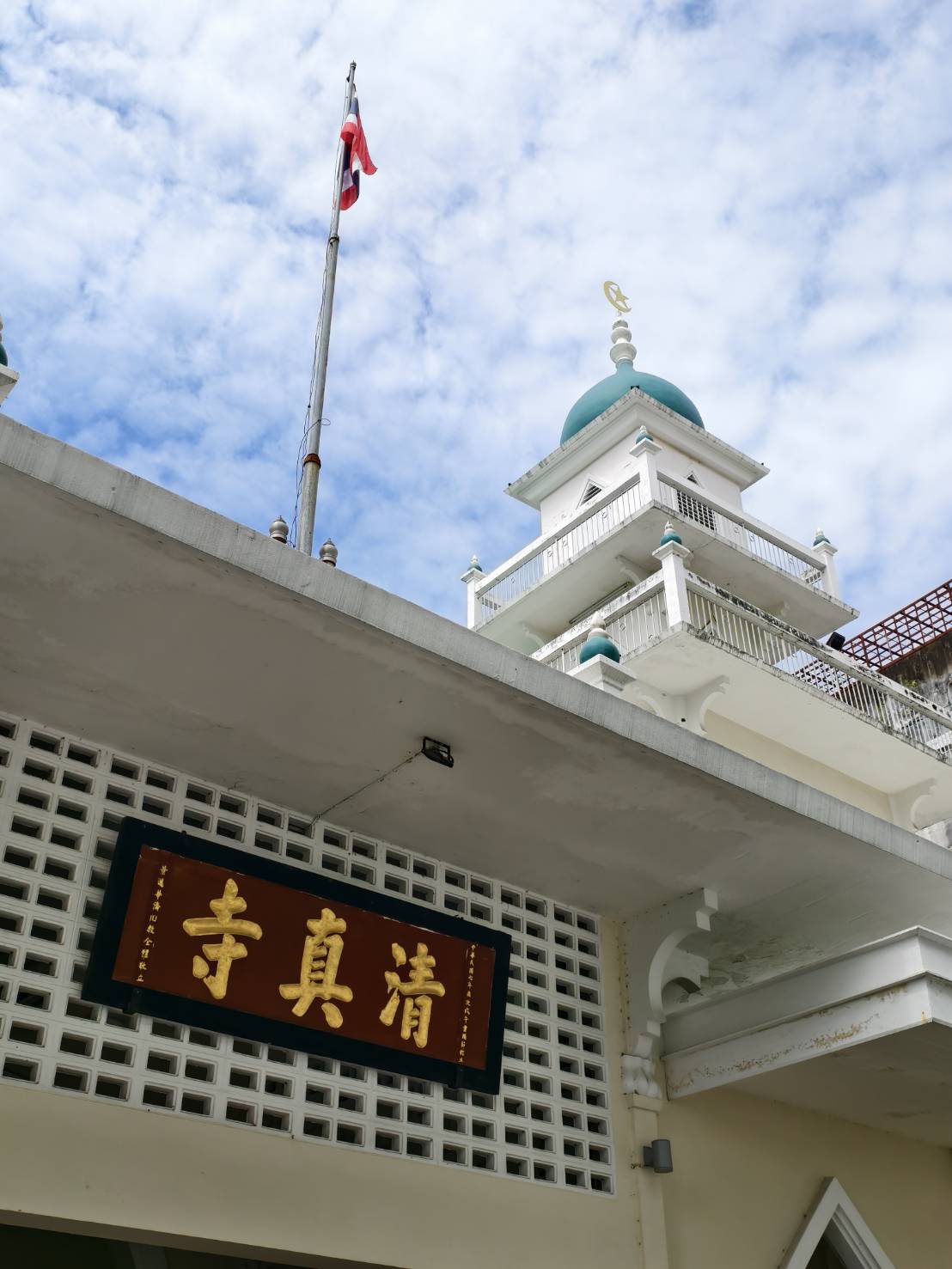 จากนั้นคณะเข้าเยี่ยมชมมัสยิดข้างเผือก มีอิมามมุตาฟา หะซัน หรือนายสรกิจ หะซัน ผู้ทรงคุณวุฒิจุฬาราชมนตรี ที่ปรึกษากรรมการอิสลามเชียงใหม่ ดูแล มัสยิดช้างเผือกแห่งนี้ สร้างขึ้นอย่างสวยงาม ใช้งบประมาณ กว่า 60 ล้านบาท ชาวมุสลิมทั่วโลกมาละหมาดที่แห่งนี้จำนวนมากเพราะห้องละหมาดจุคนได้มากกว่า 1,000 คน