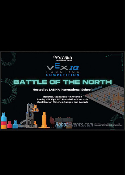 โรงเรียนนานาชาติลานนา (Lanna International School Thailand) เตรียมพร้อมจัดการแข่งขันหุ่นยนต์ระดับภูมิภาค “VEX IQ – Battle of the North” วันเสาร์ที่ 29 พฤศจิกายน 2568 เวลา 08.00–15.30 น. ณ โรงเรียนนานาชาติลานนา จังหวัดเชียงใหม่