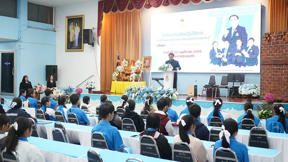 เมื่อวันที่ 22 พฤศจิกายน 2568 นายพิพัฒน์ สายสอน ผู้อำนวยการโรงเรียนวัฒโนทัยพายัพ เป็นประธานเปิดการอบรมเชิงปฏิบัติการ “การพัฒนาเครือข่ายนักเรียนด้านประชาสัมพันธ์ GEN Z PR : THE ULTIMATE COMMUNICATOR (รุ่นที่ 1)” จัดโดยโรงเรียนวัฒโนทัยพายัพ ณ ห้องประชุมดอกปีบ เพื่อพัฒนาศักยภาพนักเรียนที่มีความสนใจด้านประชาสัมพันธ์ ให้มีบุคลิกภาพที่เหมาะสม สามารถปฏิบัติหน้าที่พิธีกรในงานต่าง ๆ รวมทั้งผลิตคอนเทนต์และนำเสนอข่าวสารได้อย่างถูกต้องและมีประสิทธิภาพ