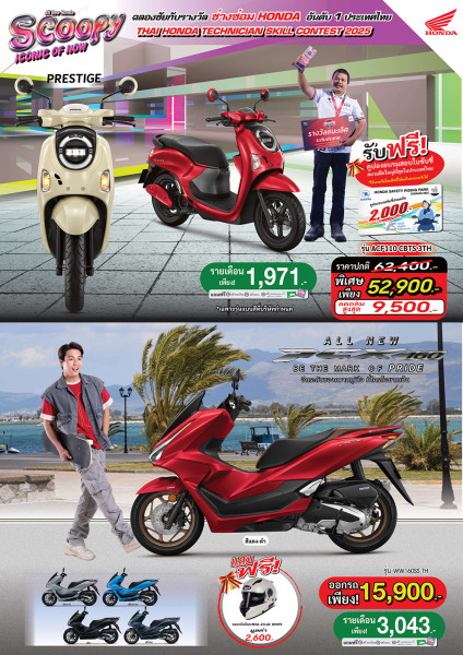 เพียง 1,900 บาท! ก็ออกรถHonda Scoopy ใหม่ได้เลย ไม่ต้องจ่ายเพิ่ม