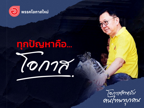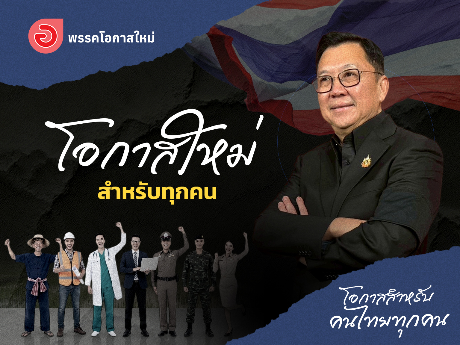 โอกาสใหม่เปลี่ยนอนาคต" โอกาสในการลงมือทำ โอกาสในการเปลี่ยน โอกาสของคนทุกคน "โอกาสใหม่" สำหรับไทยทุกคน