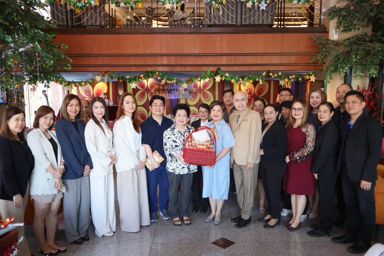 วารุณี คำเมรุ ผู้จัดการทั่วไป พร้อมทีมงานฝ่ายบริหารและฝ่ายขาย โรงแรมดวงตะวันเชียงใหม่ มอบกระเช้าของขวัญปีใหม่ แด่คุณสุภาภรณ์ แสงทรัพย์ และครอบครัว เจ้าของโรงแรมดวงตะวันเชียงใหม่ พร้อมอวยพรและขอพรในโอกาสปีใหม่