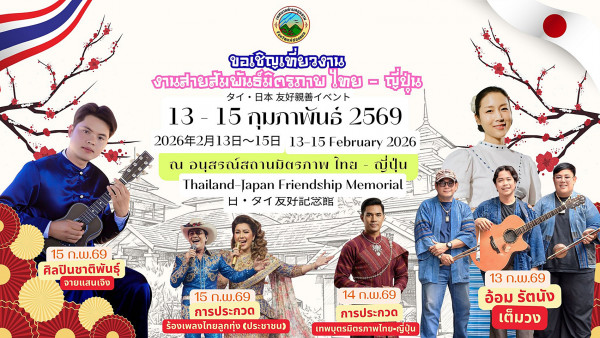 สำนักงานเทศบาลตำบลขุนยวม อำเภอขุนยวม จังหวัดแม่ฮ่องสอน นำโดย นายจำลอง จิโนเป็ง นายกเทศมนตรีตำบลขุนยวม กำหนดจัดงานที่ยิ่งใหญ่แห่งมิตรภาพ งานสายสัมพันธ์ทางวัฒนธรรมไทย - ญี่ปุ่น ( Thai – Japan Friendship Event ) ประจำปี 2569 ระหว่าง วันที่ 13 – 15 กุมภาพันธ์ 2569 ณ อนุสรณ์สถานมิตรภาพ ไทย – ญี่ปุ่น (Thailand–Japan Friendship Memorial)