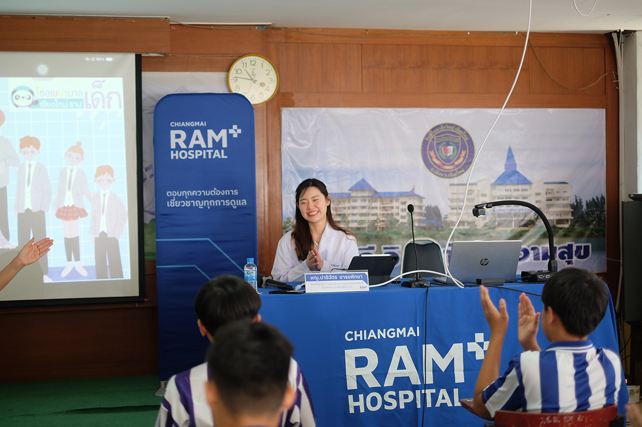 โอกาสนี้ โรงพยาบาลเชียงใหม่ ราม ร่วมสนับสนุนกิจกรรม โดยมี พญ.ปาริฉัตร อารยพิทยา กุมารแพทย์ เป็นวิทยากรบรรยายให้ความรู้เกี่ยวกับการเตรียมความพร้อมด้านร่างกายและจิตใจก่อนเข้าสู่วัยรุ่น พร้อมด้วยทีมแผนกกุมารเวชและแผนกลูกค้าสัมพันธ์ ร่วมให้คำแนะนำแก่นักเรียนอย่างใกล้ชิด เพื่อให้นักเรียนสามารถนำความรู้ไปปรับใช้ในการดูแลสุขภาพของตนเองได้อย่างถูกต้องและเหมาะสม ณ ห้องประชุมภัทโรบล โรงเรียนวชิรวิทย์ เชียงใหม่