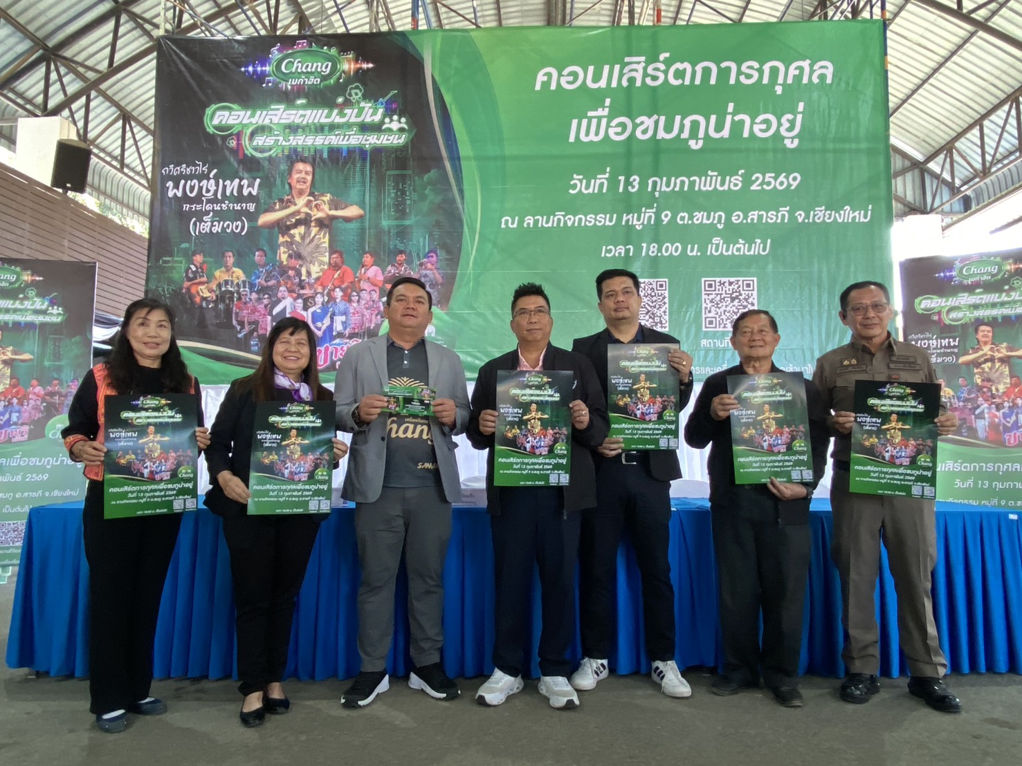 (21 ม.ค.69) ชุมชนตำบลชมภู อำเภอสารภี จังหวัดเชียงใหม่ แถลงข่าวเตรียมจัดกิจกรรม “คอนเสิร์ตการกุศลเพื่อชมภูน่าอยู่” โดยมี ดร.ธวัช ชัยแก้ว นายกเทศมนตรีตำบลชมภู นายวสัน รอดปั้น ผู้จัดการการขายเครื่องดื่มตราช้าง (ไทยเบฟเวอเรจ) ประจำจังหวัดเชียงใหม่ ผู้นำชุมชน และคณะผู้เกี่ยวข้อง ร่วมการแถลงข่าวต่อสื่อมวลชน มีผู้ร่วมรับฟังจำนวนมาก ณ สำนักงานเทศบาลตำบลชมภู