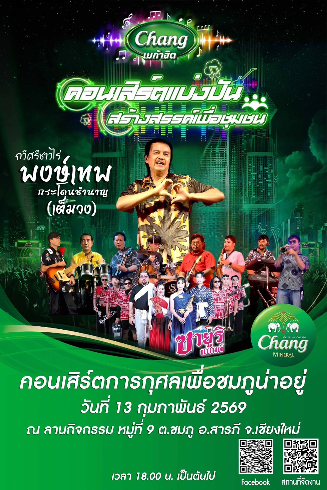 การจัดคอนเสิร์ตการกุศลครั้งนี้ กำหนดจัดขึ้นในวันเสาร์ที่ 13 กุมภาพันธ์ 2569 ตั้งแต่เวลา 18.00 น. เป็นต้นไป บนพื้นที่กว่า ณ ลานกิจกรรมหมู่ 9 บ้านร่มป่าตอง ตำบลชมภู อำเภอสารภี จังหวัดเชียงใหม่ มีวัตถุประสงค์เพื่อส่งเสริมการมีส่วนร่วมของคนในชุมชน สร้างความสามัคคี และปลูกฝังการแบ่งปันน้ำใจและความเอื้ออาทร ผ่านกิจกรรมด้านดนตรีและการแสดงเชิงสร้างสรรค์ พร้อมทั้งเป็นการส่งเสริมภาพลักษณ์ที่ดีของชุมชนและองค์กรในพื้นที่ ให้มีความรับผิดชอบและมีจิตสาธารณะ