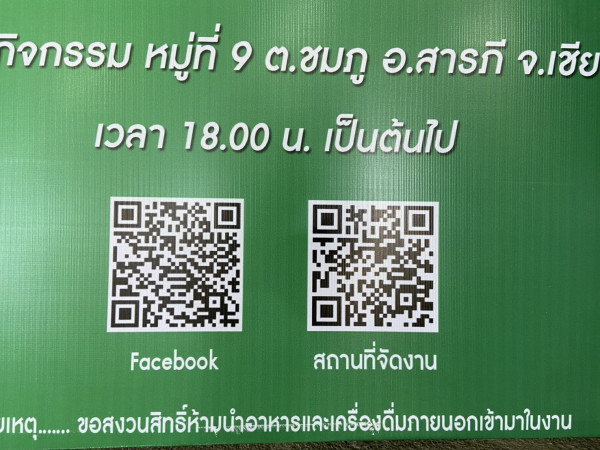 ทั้งนี้ ประชาชนและผู้สนใจสามารถเข้าร่วมกิจกรรมและร่วมเป็นส่วนหนึ่งในการสนับสนุนการพัฒนาชุมชนตำบลชมภู ได้ตามวันและเวลาดังกล่าว โดยสามารถสแกนคิวอาร์โค้ด (ตามที่แนบ) เพื่อดูรายละเอียดการจัดงาน และซื้อบัตรสมทบทุน เพื่อเข้าชมงานได้ตั้งแต่บัดนี้เป็นต้นไป หรือสอบถามรายละเอียดเพิ่มเติมได้ที่ โทร. 0622414982