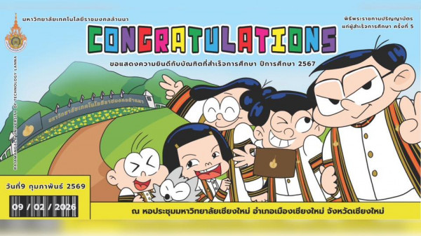 พระบาทสมเด็จพระเจ้าอยู่หัว ทรงพระกรุณาโปรดเกล้าโปรดกระหม่อมให้ นายเกษม วัฒนชัย องคมนตรี เป็นผู้แทนพระองค์ ไปมอบปริญญาบัตรแก่ผู้สำเร็จการศึกษา จากมหาวิทยาลัยเทคโนโลยีราชมงคลล้านนาประจำปีการศึกษา 2567 วันจันทร์ที่ 9 กุมภาพันธ์ 2569 ณ หอประชุมมหาวิทยาลัยเชียงใหม่ อำเภอเมืองเชียงใหม่ จังหวัดเชียงใหม่
