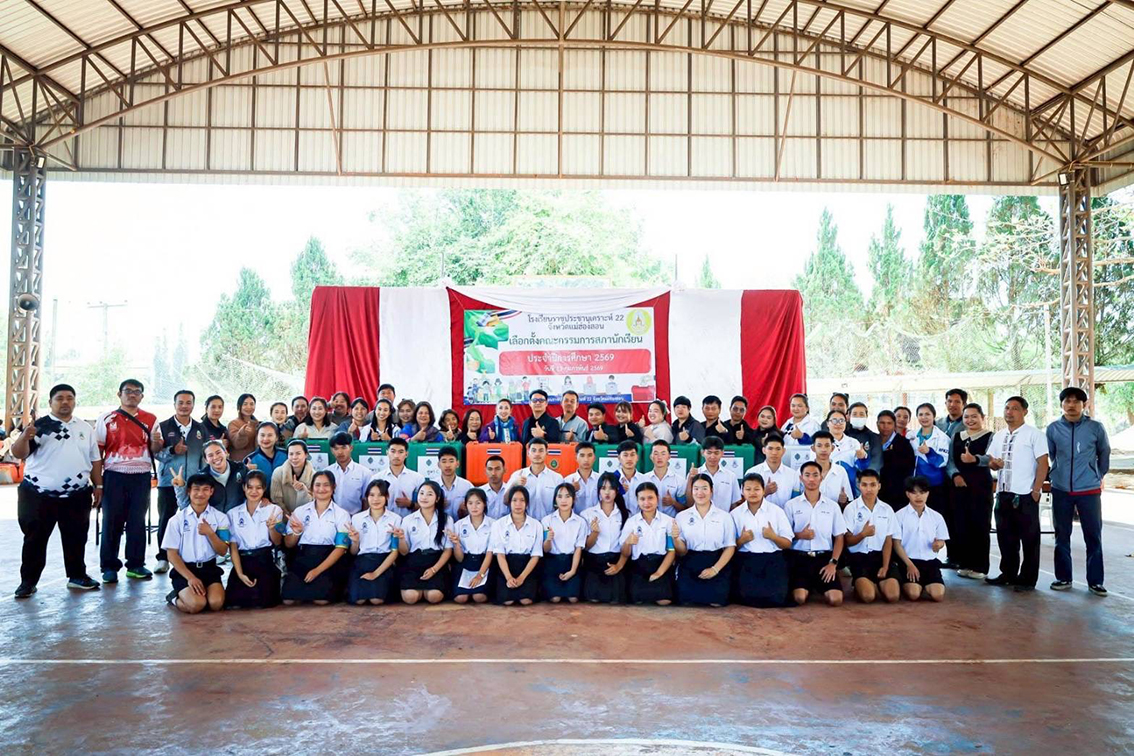 โรงเรียนราชประชานุเคราะห์ 22 จังหวัดแม่ฮ่องสอน เลือกตั้งคณะกรรมการสภานักเรียนชุดใหม่ ปีการศึกษา 2569 โดยเน้นย้ำไม่โกง โปร่งใส ใจสะอาด ผลจากการนับคะแนนเสียง พรรคที่มีผลการเลือกตั้งเป็นอันดับ ๑ คือ พรรคคนรุ่นใหม่หัวใจฟ้าทอง