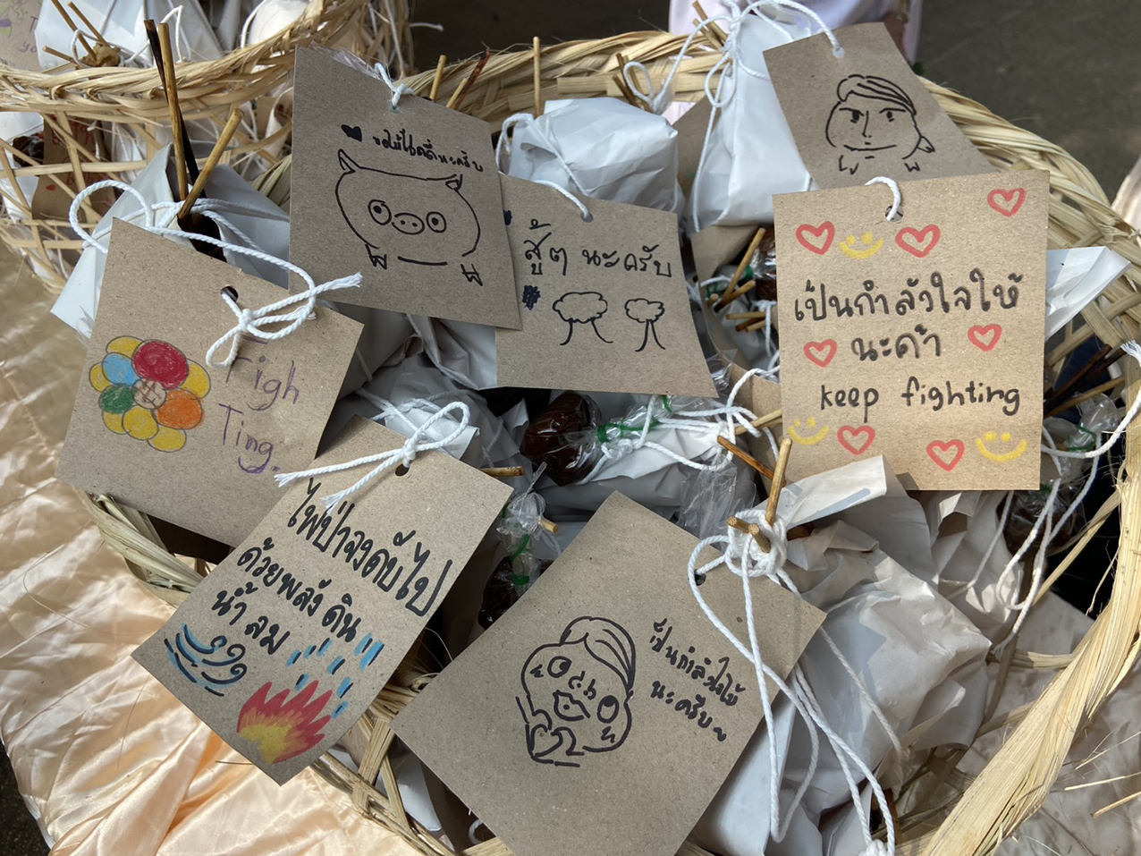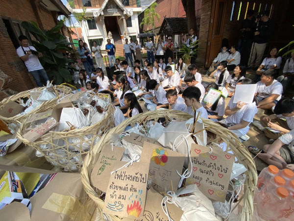 เด็กนักเรียนเชียงใหม่ กว่าร้อยคน ใช้เวลาว่างช่วงปิดเทอม ช่วยกันห่อข้าวเหนียวหมูปิ้ง ไข่ต้ม น้ำพริกแดง เป็นเสบียง พร้อมเขียนข้อความส่งกำลังใจมอบให้พี่ๆ ฮีโร่ดับไฟป่าทั่วเชียงใหม่ สังคมชื่นชม เด็กจิตอาสา ณ ศาลาอเนกประสงค์วัดโลกโมฬี เชียงใหม่