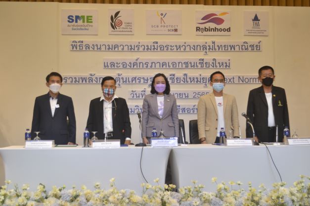 กลุ่มไทยพาณิชย์ นำโดยไทยพาณิชย์ โพรเทค และโรบินฮู้ด ลงนามความร่วมมือองค์กรภาคเอกชนเชียงใหม่ ช่วยเอสเอ็มอีเชียงใหม่เคลื่อนธุรกิจยุค Next Normal อย่างมั่นใจ ด้วยจุดแข็งด้านความคุ้มครองและโปรแกรมสร้างอาชีพอิสระ การบริหารจัดการร้านค้าบนโลกออนไลน์ และแพลตฟอร์มส่งอาหารช่วยคนตัวเล็ก พร้อมปล่อยคาราวานโปรโมทแพลตฟอร์ม SCB Protect แม่มณี และโรบินฮู้ด ใน 2 แลนด์มาร์ค “ตลาดวโรรส (กาดหลวง)” และ “ตลาดรวมโชค” หวังสร้างการรับรู้ความสามารถของกลุ่มไทยพาณิชย์ในการช่วยผู้ประกอบการบริหารธุรกิจ ติดต่อลูกค้า หารายได้เสริม เพิ่มเติมความมั่นคง